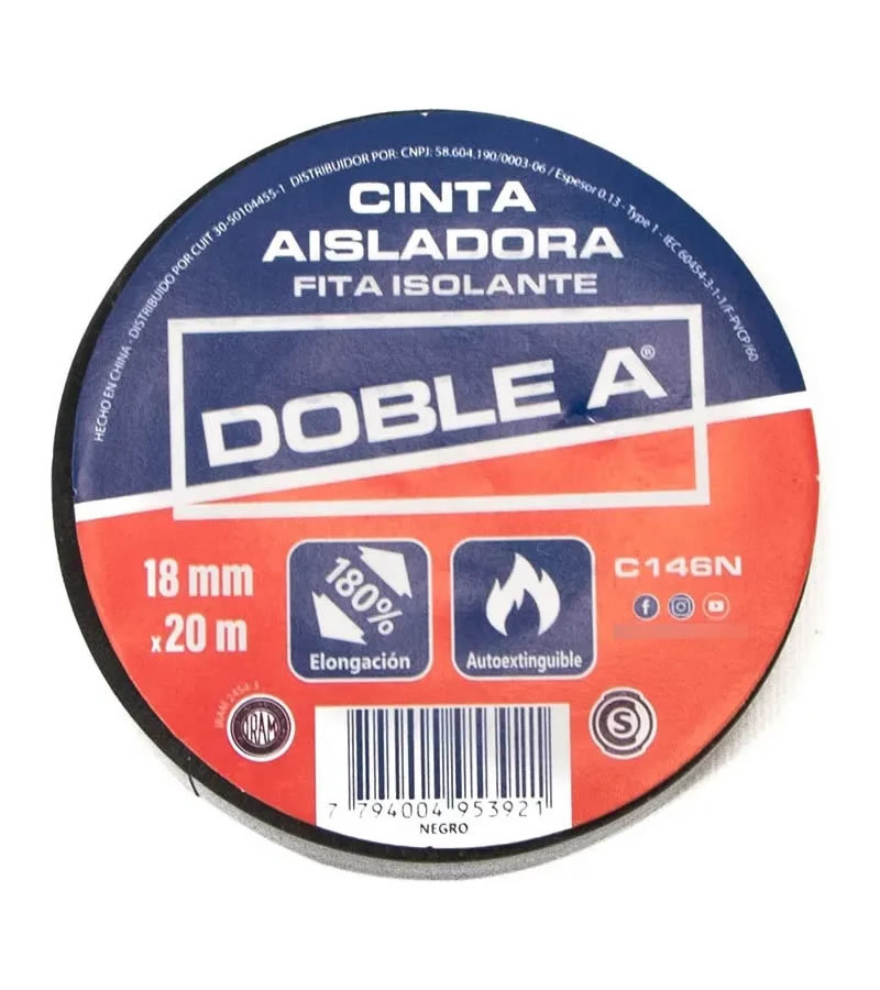 Esta cinta aisladora, está fabricada en PVC de alta calidad, destacando por su excelente elasticidad. Proporciona una protección eléctrica y mecánica eficaz gracias a su cuerpo delgado y resistente, con una elongación que supera el 180%. Es apta para cualquier tipo de clima y su aplicación es sencilla incluso a bajas temperaturas. Cumple con los estándares de calidad establecidos. Es adecuada para usos de hasta 600 volts y puede ser aplicada en un rango de temperatura entre 0º y 80º C.