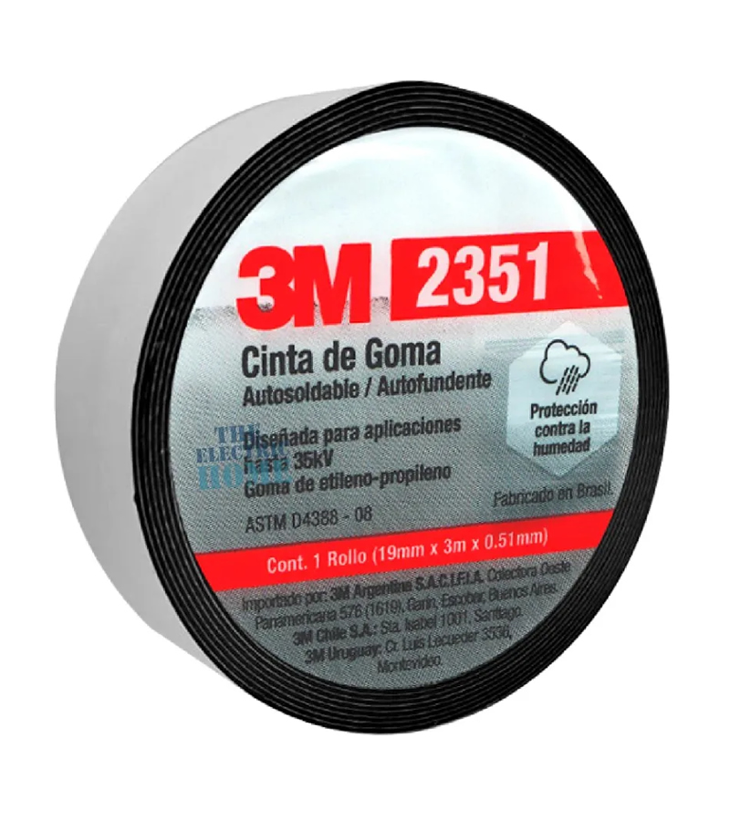 La cinta Scotch 2351 de 3M es de color negro y sus dimensiones son de 19 mm. de ancho x 3 m de largo; su espesor 0,51 mm. Posee un liner de polipropileno de color gris que se desprende con facilidad al aplicar la cinta. Puede usarse en cables de dieléctrico sólido cuya temperatura de sobrecarga alcance hasta 130°C o bien como aislamiento primario para construir conos deflectores en cables de cubierta y/o sellar en los extremos a cables de bajo y alto voltaje. Cumple con las certificaciones NBR 10669, EB 1941 y C33-011 (Normalisation Française - July 1993).