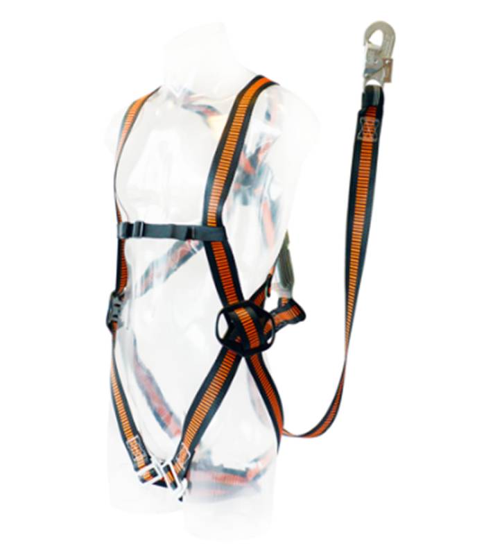 Cinta bicolor para facilitar la colocación del arnés. Diseño ergonómico para facilitar los movimientos del usuario. Mosquetones automáticos para un cierre seguro que ahorra tiempo. Pasadores plásticos para retención de la cinta sobrante una vez ajustado el arnés.