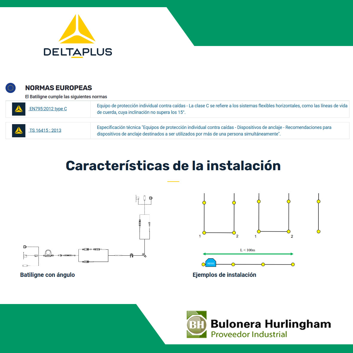 Compuesta por un cable de aseguramiento flexible, la línea de vida de cable BATILIGNE ha sido diseñada para ser utilizada con un simple mosquetón, lo que facilita enormemente la conexión en cualquier punto del cable.