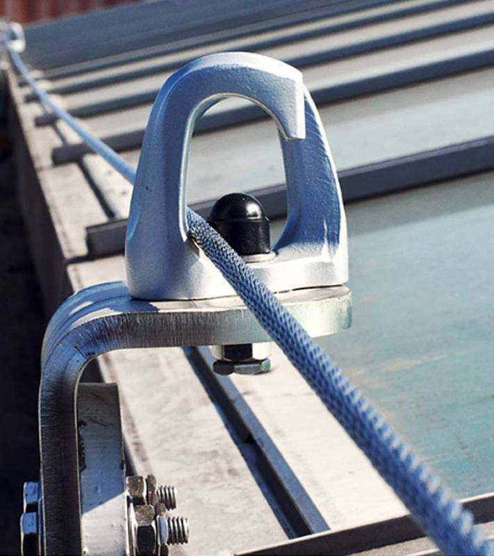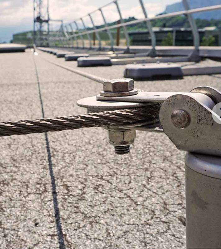 Línea de vida horizontal de cable de acero inoxidable con puntos intermedios manuales para suelos y paredes.