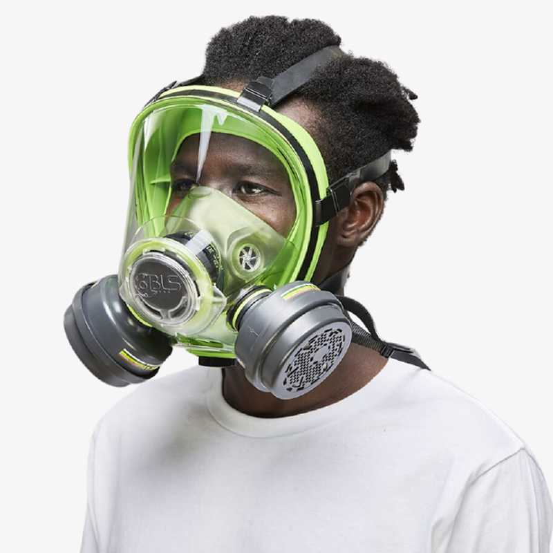 Respirador Cara Completa BLS 5700 Silicona, protección total, sellado facial en caucho termoplástico, conexión bayoneta, visor resistente, anti-empañamiento y arnés cómodo. Compatible con filtros BLS 200 y BLS 201 b-lock. Garantiza seguridad y confort en cada uso.