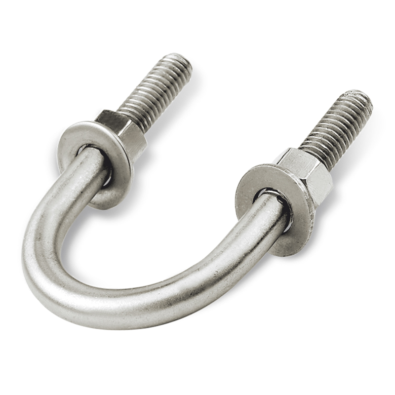 Las abrazaderas U-bolt son accesorios de acero inoxidable es utilizado como sujeción de cañerías a estructuras metálicas de espesores no mayores a 10mm ya que el largo de la rosca es limitado y debe quedar margen de ajuste para el apriete. Las mismas cuentan con tuercas y arandelas.