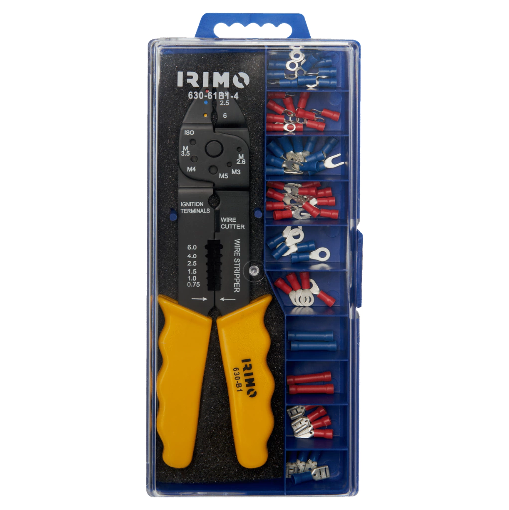 El juego incluye los alicates para engastado 630-B1-1 y 60 terminales aislados.