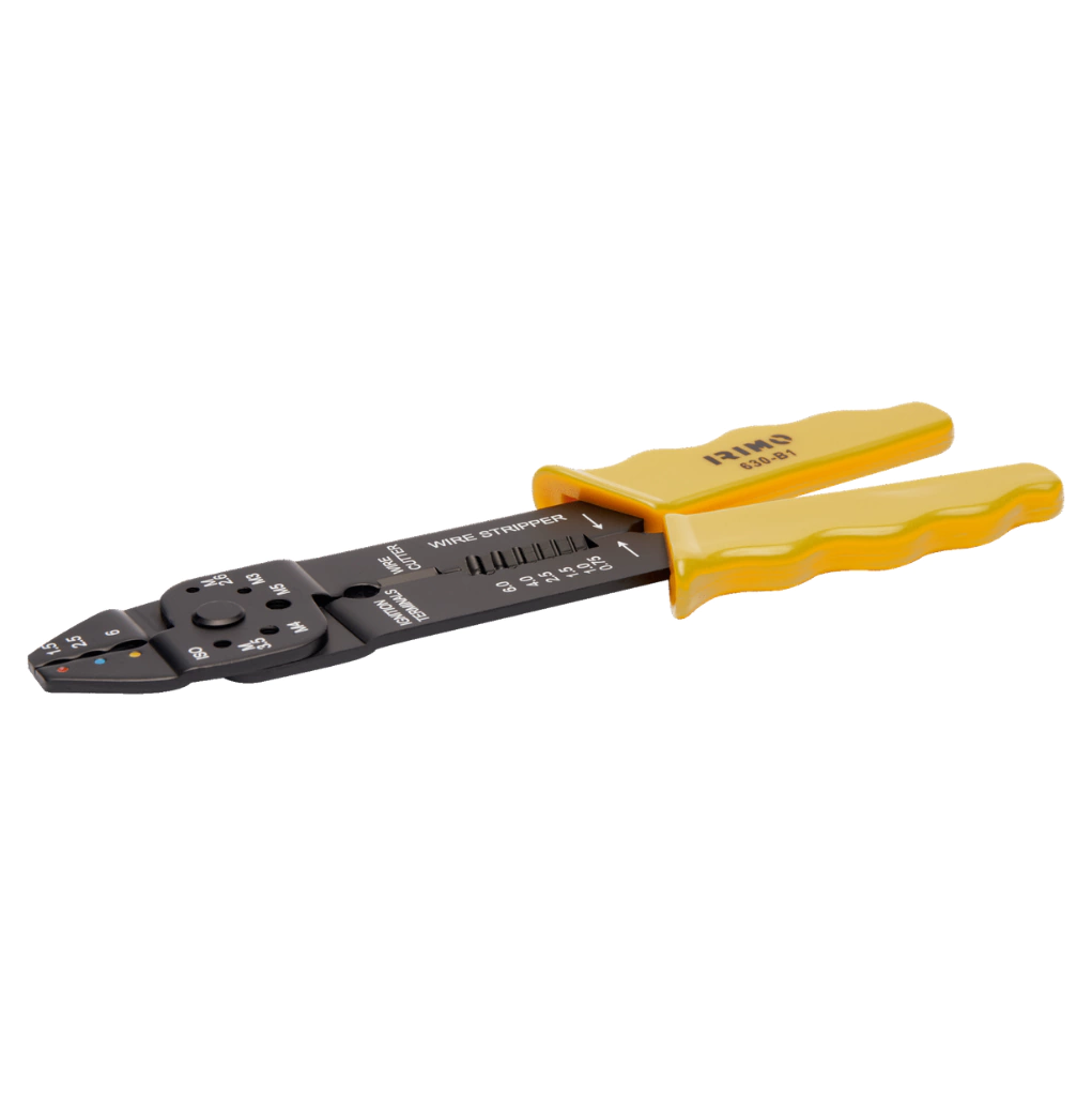 Pinza profesional diseñada para el crimpado de terminales aislados (ojal, horquilla, pala, etc.) en cables de sección 0.5 mm² a 6 mm². Fabricada en acero aleado de alta resistencia con acabado fosfatado para mayor protección contra la corrosión. Incorpora tres cavidades identificadas por puntos de color (Rojo, Azul y Amarillo) que corresponden a las medidas estándar de los terminales del mercado.