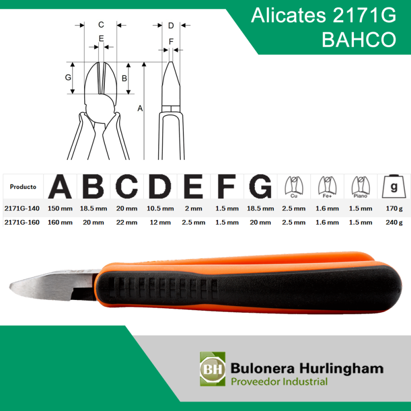 | >BAH25515 | ALICATE CORTE DIAGONAL 2171-160A (ex 2175G-160) -- BAHCO |