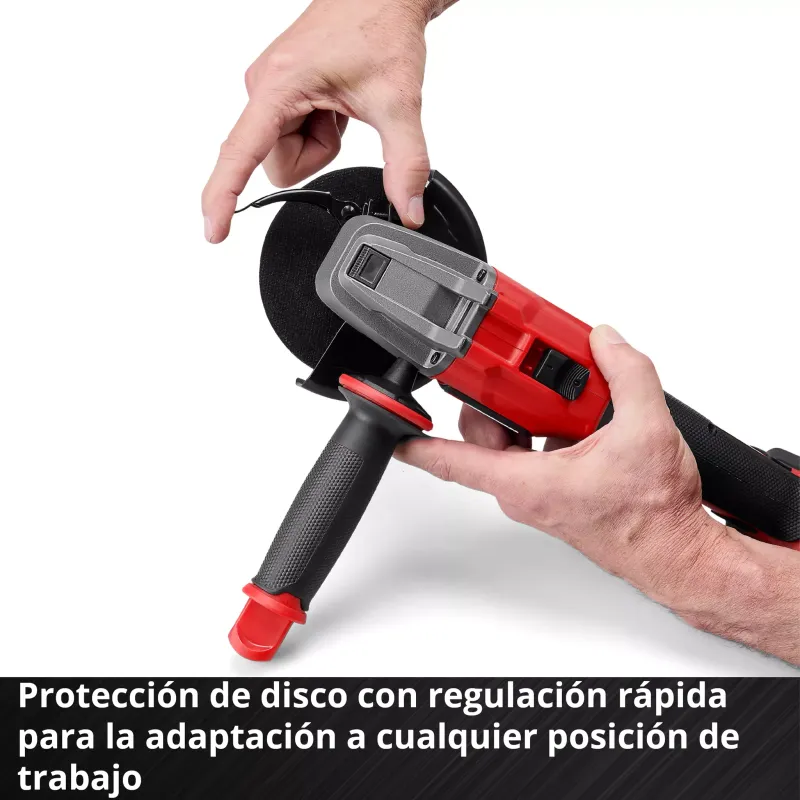Sistema Quick Fix (Cambio Rápido): Una de las mayores ventajas de este modelo es su tuerca de sujeción rápida. Olvídate de buscar la llave de pivotes; con el sistema Quick Fix, puedes cambiar los discos de corte o desbaste manualmente en cuestión de segundos, ahorrando tiempo crítico en el trabajo.