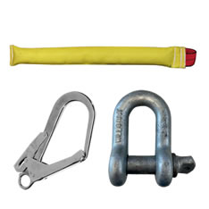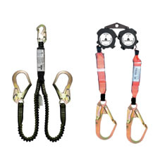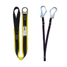 Elemento de amarre anticaídas en cinta plana doble de 1,5 m, garantizando vinculación al anclaje en todo momento.