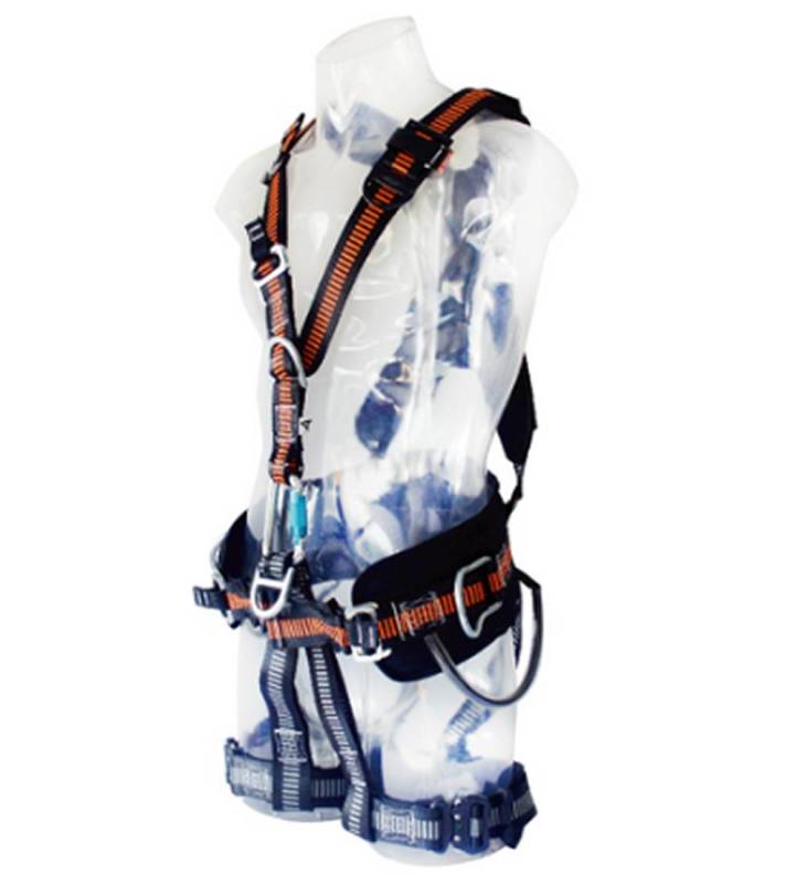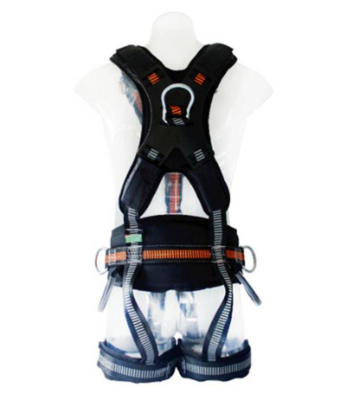 Arnés con 5 puntos de conexión. Diseño en "Y". Hebillas de desacople rápido. Faja lumbar, espaldar y pierneras acolchadas para optimizar la ergonomía en tareas de acceso por cuerda. Ex WXEHA1083QB