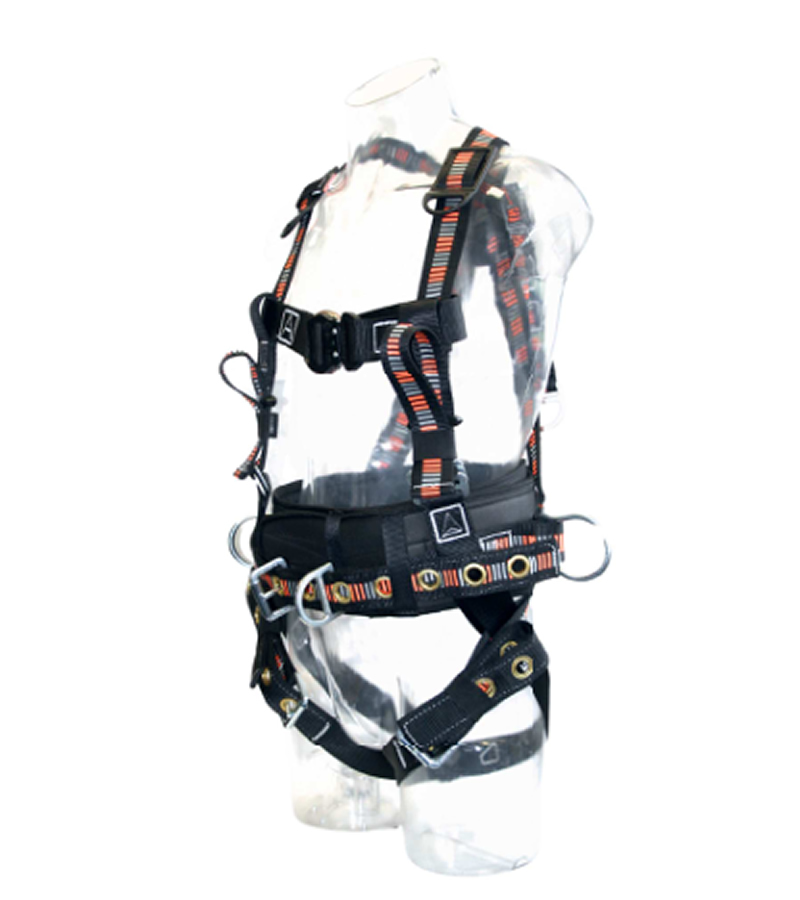 Arnés petrolero, contratamiento hidrófugo y oleófugo, garantizando una mayor vida útil. Apto para usuarios de hasta 140 kg.