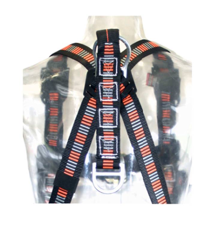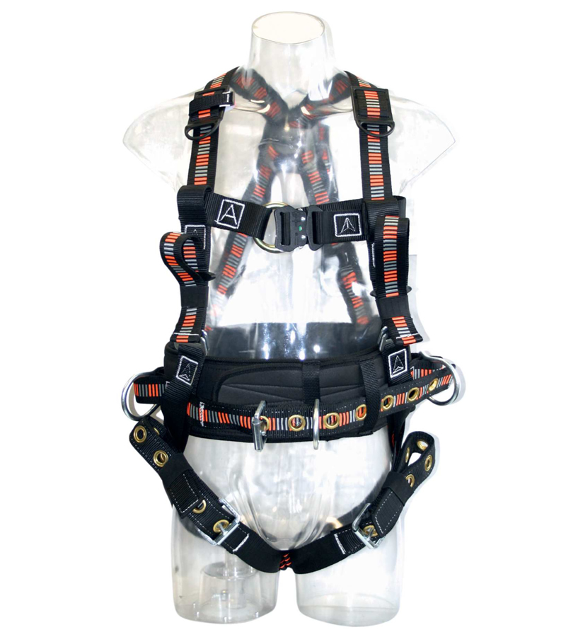 Cinta bicolor para facilitar la colocación del arnés. Diseño ergonómico para facilitar los movimientos del usuario. Sistema NFC de trazabilidad.
