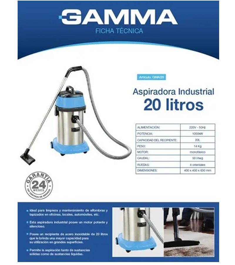 La Aspiradora industrial De tacho Gamma GMAI20 es la solución perfecta para mantener tus espacios limpios y ordenados. Con una capacidad de 20 litros, podrás recoger tanto sólidos como líquidos sin preocuparte por cambiar de bolsa constantemente. Su potente motor de 1000 W garantiza una limpieza eficiente y rápida en cualquier situación. Además, su función sopladora te permitirá deshacerte de las hojas y el polvo en exteriores.