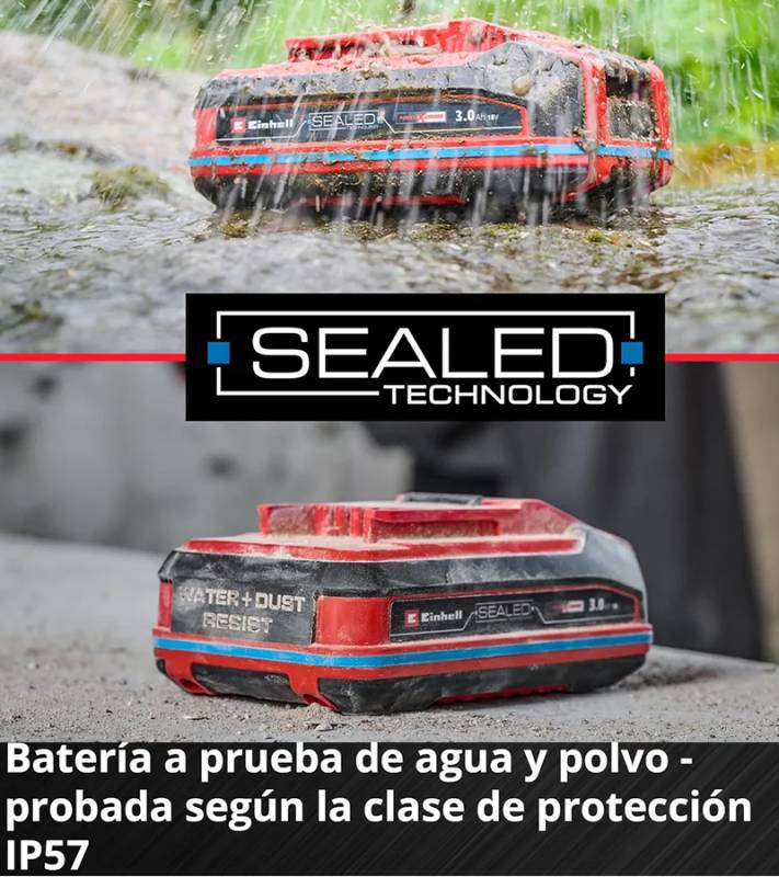 SEALED – La batería SEALED Power X-Change está protegida óptimamente contra chorros de agua y polvo gracias a su carcasa sellada y a la clase de protección IP57.