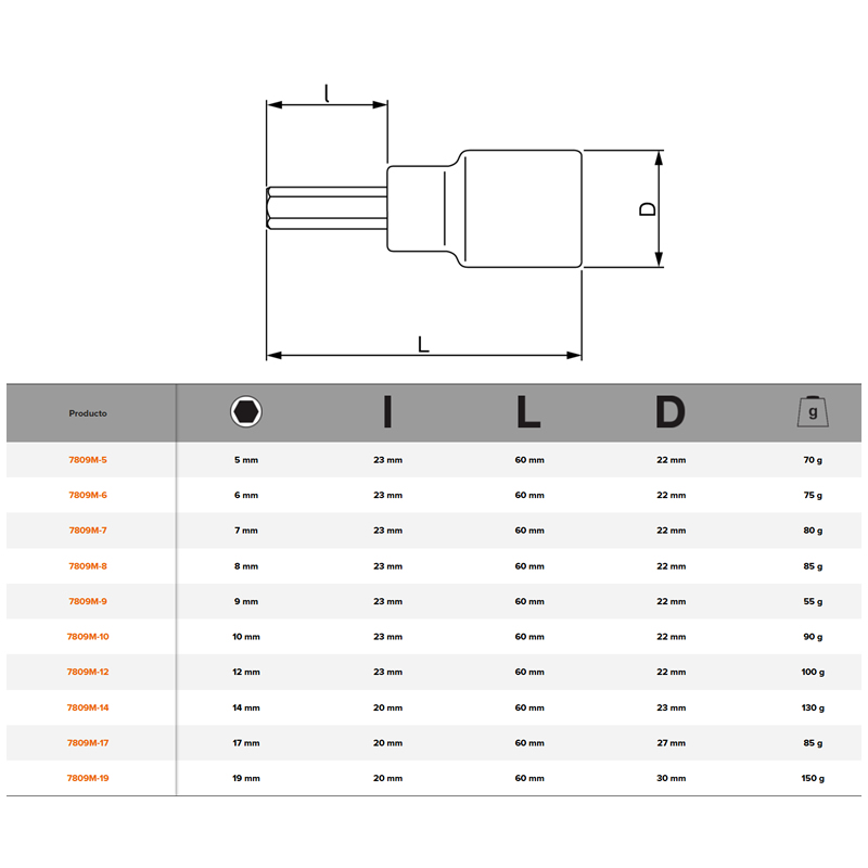 | >BAH01719 | BOCALLAVE ALLEN 19 MM (EX SM) 7809M-19 -- BAHCO |