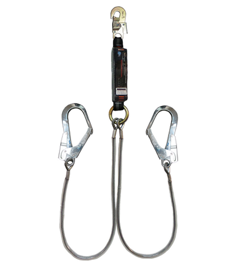 Elemento de amarre anticaídas doble en cable de acero de 1,5 m con protección en PVC con el fin de evitar su deterioro en ambientes agresivos.