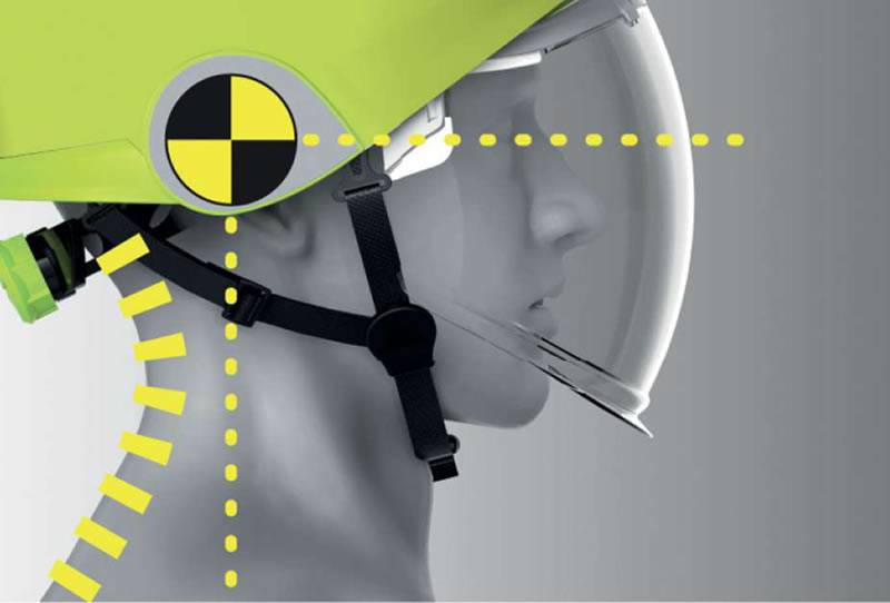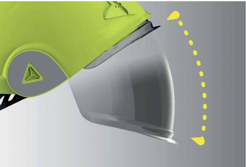 Casco de obra de doble carcasa, equipado con visera, para protección contra arcos eléctricos y salpicaduras de metal fundido.