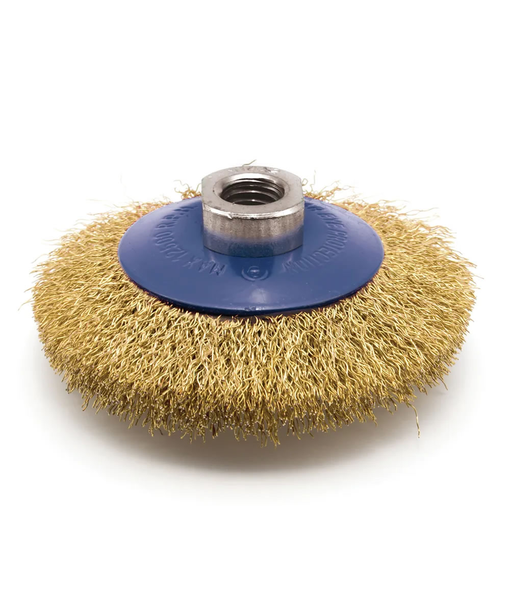 | Con rosca M14 para amoladora angular. | Centro deprimido. | Permite remover material controladamente. | Alambres de acero bronceado.