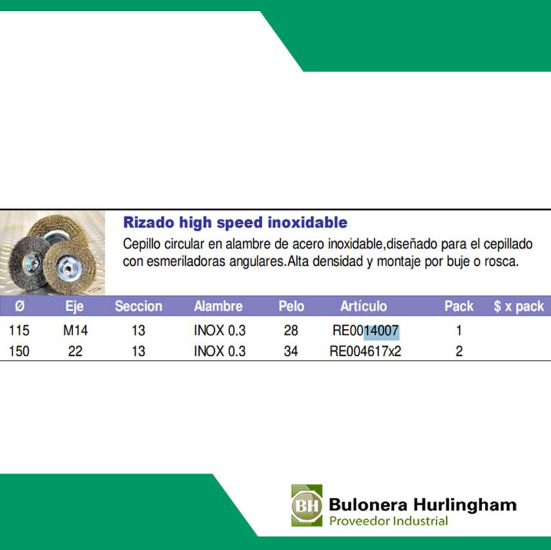 | >FPL14007 | CEPILLO PLATO 115MM RIZADO HS INOX. 14007 BUJE M14 FPL |