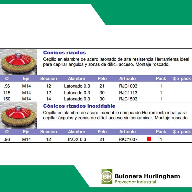 | >FPL1007 | CEPILLO CONICO 96MM RIZADO INOX. 1007 M14 FPL |