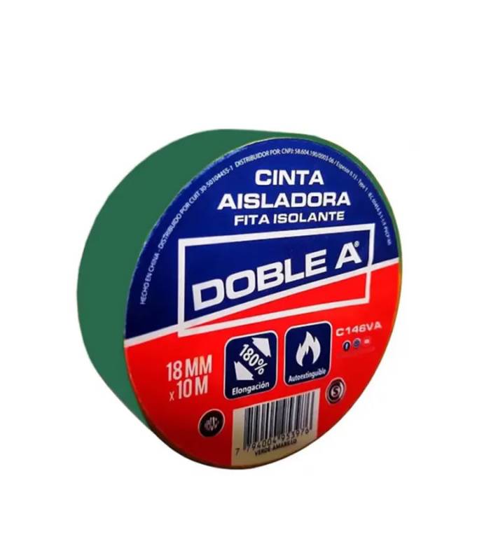 69957312406 CINTA AISLADORA 18MM X 10 MTS VERDE DOBLE AA