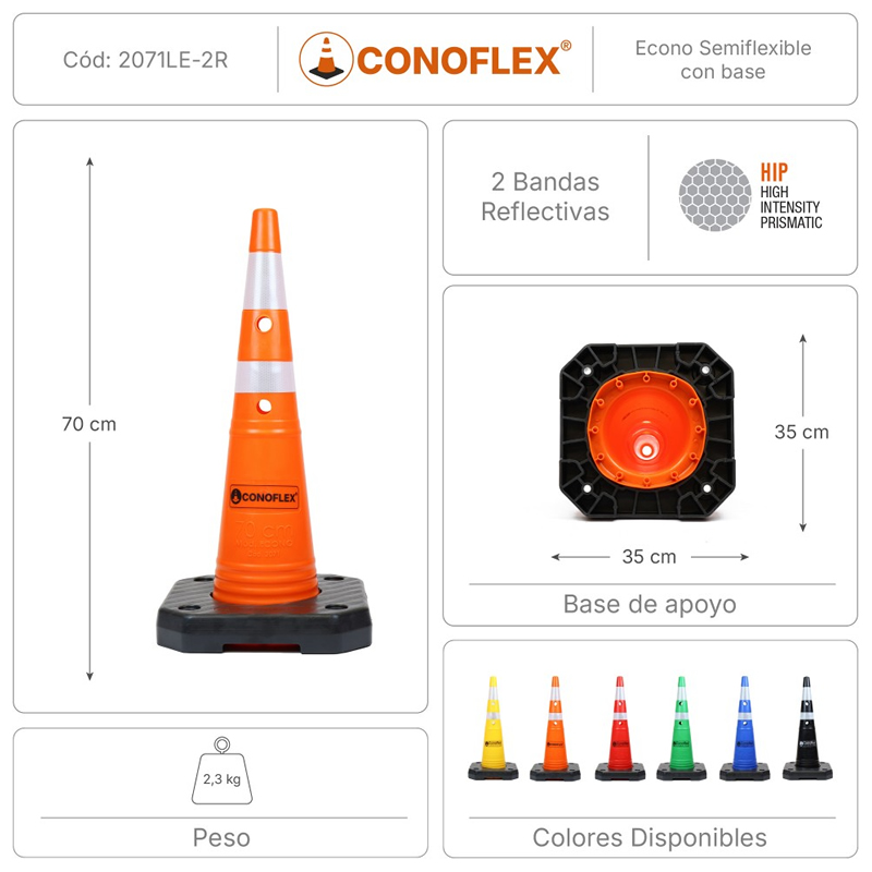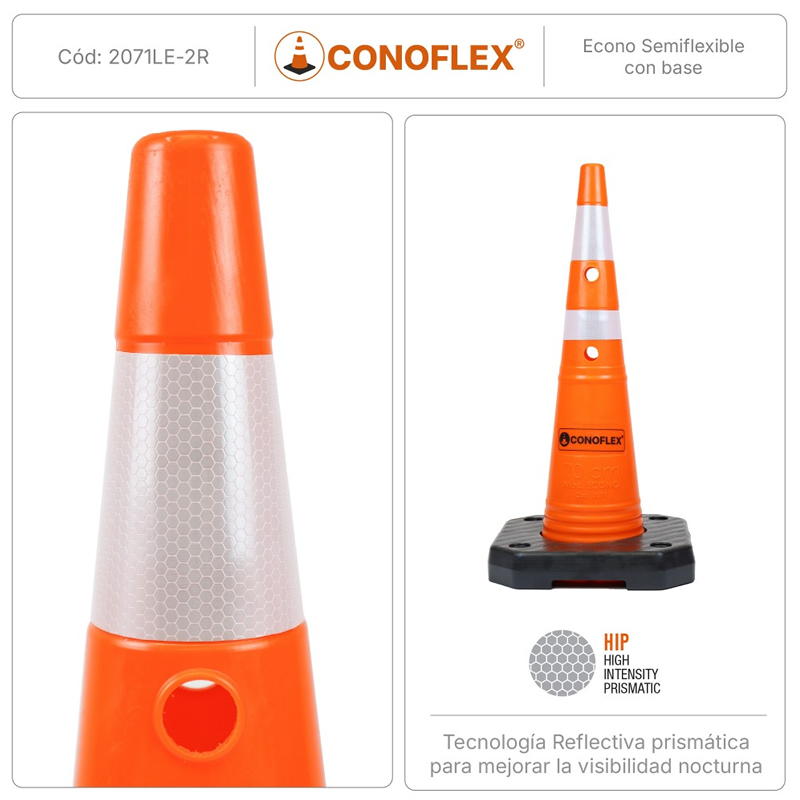 Recomendado para señalización vial temporal o permanente en zonas urbanas, rutas, obras y eventos. Su diseño modular permite un fácil transporte y almacenamiento.