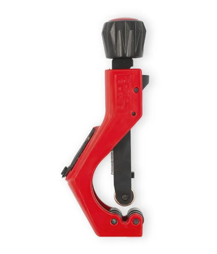 | Se puede utilizar para cortar caños de Cobre, Bronce, Aluminio y Tubos de pared delgada. INSTRUCCIONES DE USO: 1. Deslice el mecanismo de la rueda de corte en su lugar. 2. Alinee la rueda de corte con la línea de corte y presione. 3. Gire la rueda alrededor del tubo, presione luego de algunas vueltas hasta que la rueda realice el corte deseado. 4. Utilice el escariador para mejorar el borde del corte. 5. Mantenga limpio el producto y periódicamente lubrique las roscas, los rodillos y la rueda con aceite liviano.