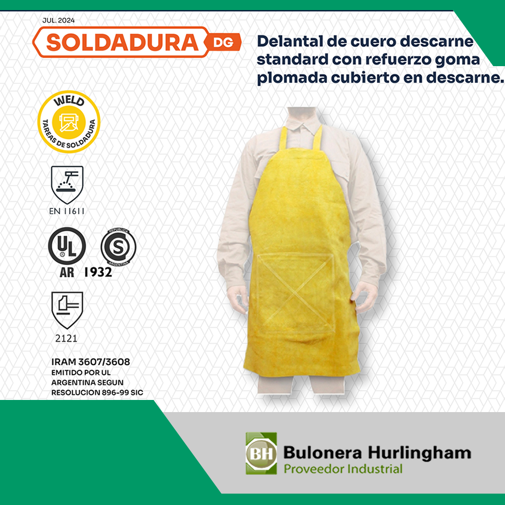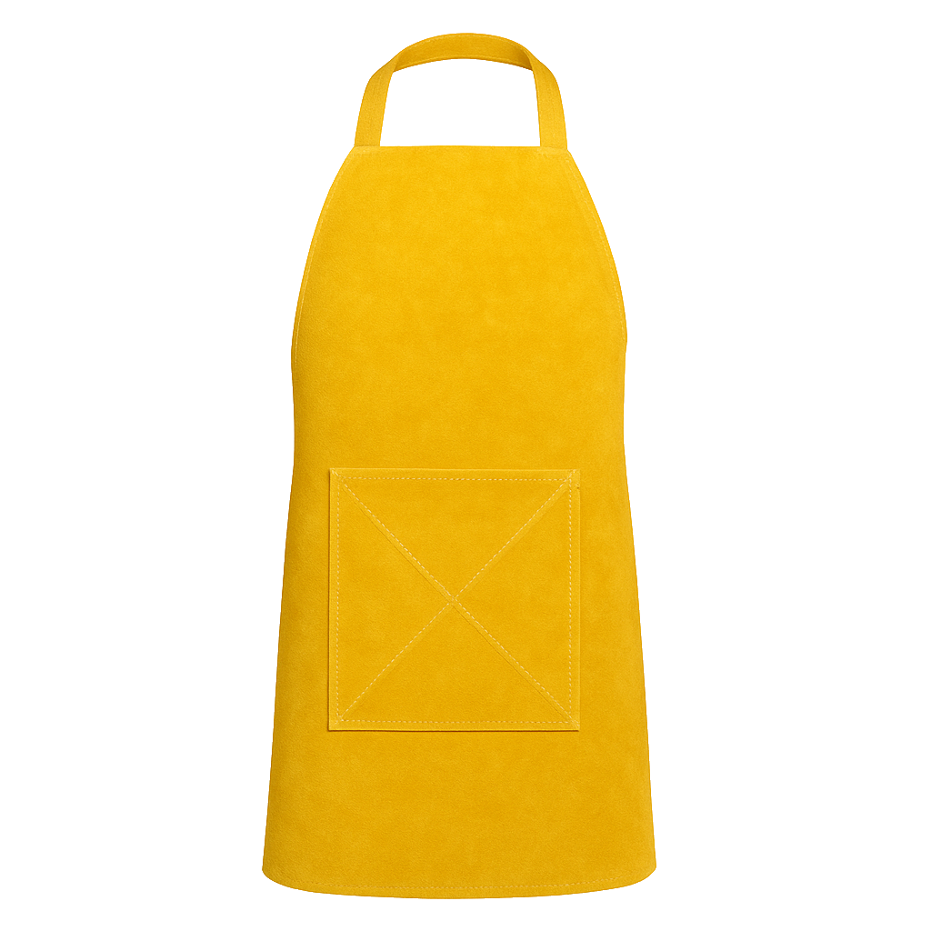Delantal de cuero descarne estándar con refuerzo de goma plomada cubierta en cuero descarne.