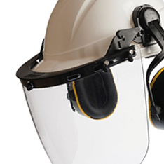 Soporte para montar conjuntamente una pantalla facial y un protector auditivo de copa de la línea L-300 al casco de seguridad LIBUS® MILENIUM.