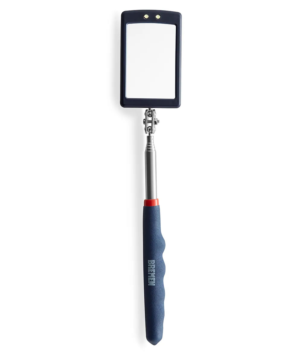 | Espejo con brazo telescópico y totalmente articulado | Extensión de Acero Inoxidable | Espejo plegable y giratorio con articulación de 360 grados | Ilumina areas oscuras con 2 Led | Incluye 2 baterías CR2032