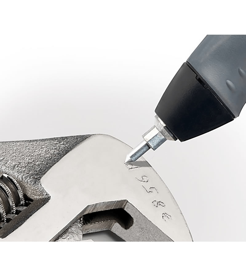 La punta de carburo sustituible permite grabar en la mayoría de superficies