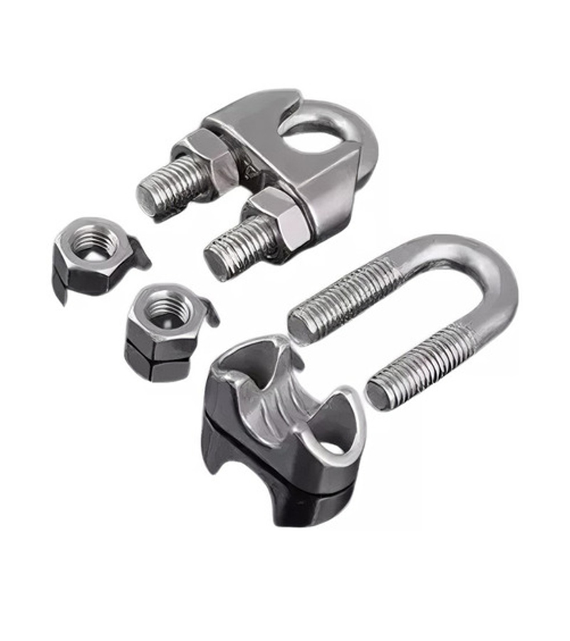 Su diseño tipo U con puente y tuercas garantiza una fijación firme, distribuyendo la presión uniformemente sin dañar el cable.