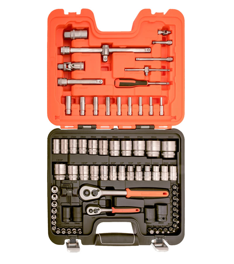 Juego de llave para válvulas con cuadro de 1/4" y 1/2" y juego de llaves de bocallave.