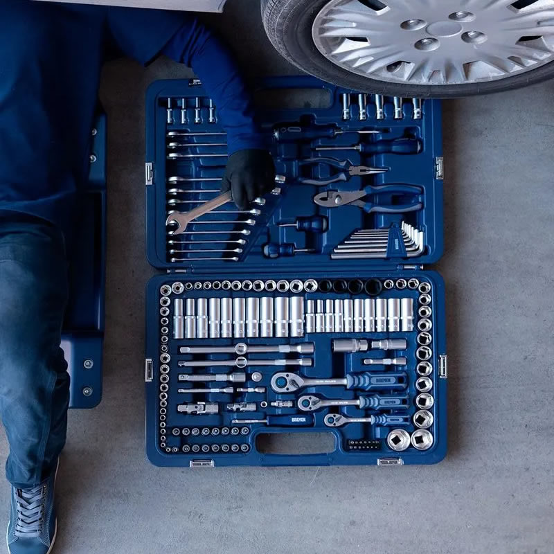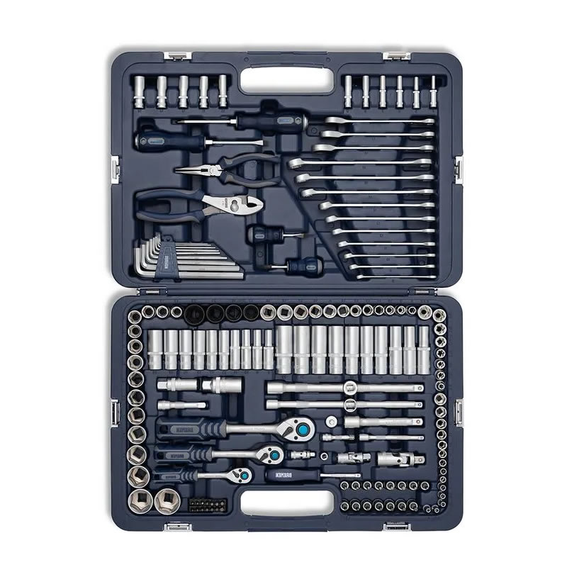 El Juego Mechaniker BREMEN es un kit completo y versátil capaz de agilizar cualquier trabajo de mecánica, permitiendo realizar diversas combinaciones y proporcionando la solución ideal para cada desafío. Este juego contiene un total de 160 piezas con encastres de 1/4", 3/8" y 1/2", además incluye llaves, pinzas y destornilladores, siendo uno de los más completos del mercado.
