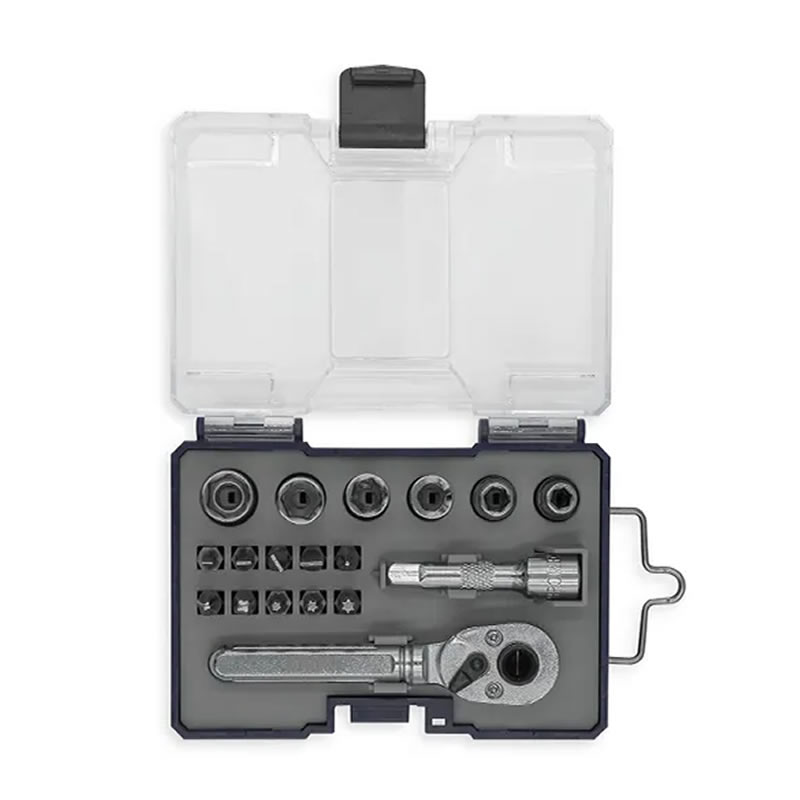 El Juego de Llave Crique BREMEN® es un set de alta calidad con puntas de atornillar, llaves tubo y llave de crique para trabajos de atornillado y montajes pequeños.