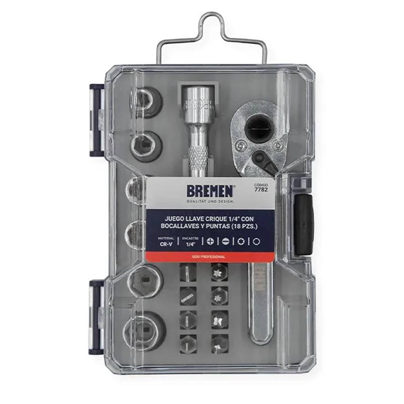 BR7782 JUEGO DE 18 PIEZAS LLAVE CRIQUE ENC.1/4 BREMEN