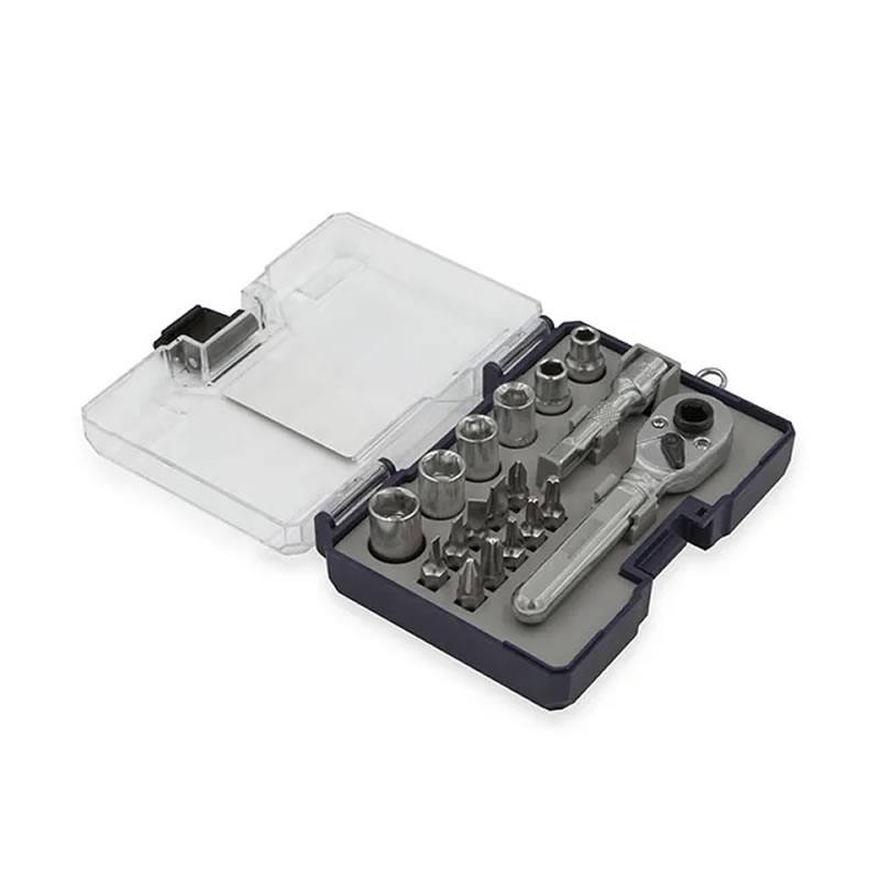 | Set de alta calidad con puntas de atornillar, llaves tubo y llave de crique para diferentes trabajos de atornillado y montajes pequeños de material Cr-V.