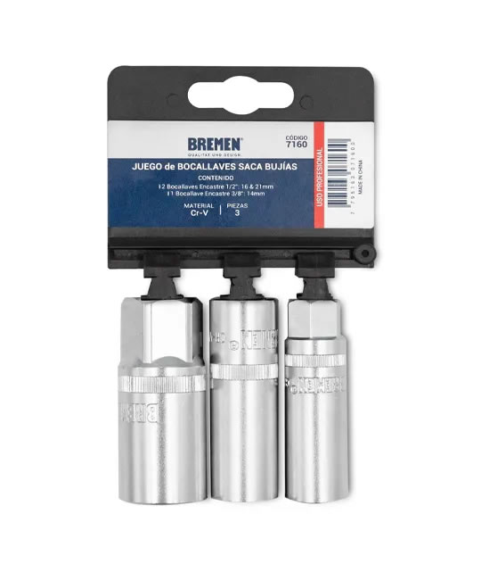 | 2 Bocallaves Encastre 1/2": 16&21mm | 1 Bocallave Encastre 3/8”: 14mm