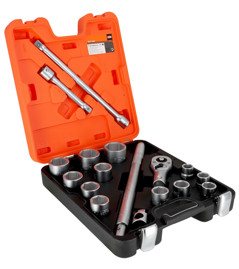 Juego de bocallaves con cuadro conductor de 3/4" con perfil hexagonal imperial y cabeza de crique - 17 piezas
