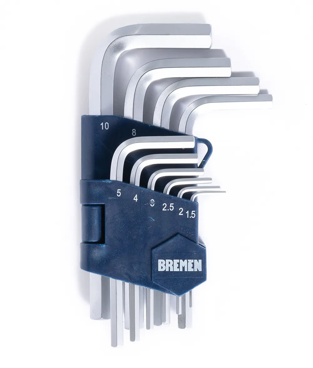 Las llaves allen largo estándar BREMEN están fabricadas en cromo vanadio, un material que le otorga resistencia para realizar todo tipo de trabajos de fuerza.