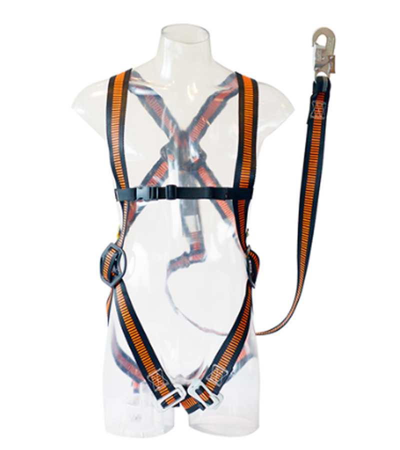 Cinta bicolor para facilitar la colocación del arnés. Diseño ergonómico para facilitar los movimientos del usuario. Mosquetones automáticos para un cierre seguro que ahorra tiempo. Pasadores plásticos para retención de la cinta sobrante una vez ajustado el arnés.