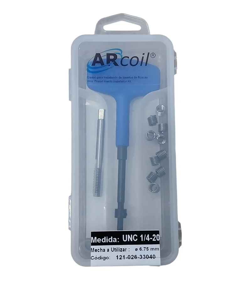 El Kit de Inserto Recoil es la solución completa y profesional para la reparación y refuerzo de roscas dañadas o desgastadas. Diseñado para restaurar la integridad original de las roscas en una amplia variedad de materiales, este kit incluye todo lo necesario para realizar una reparación rápida, precisa y duradera.