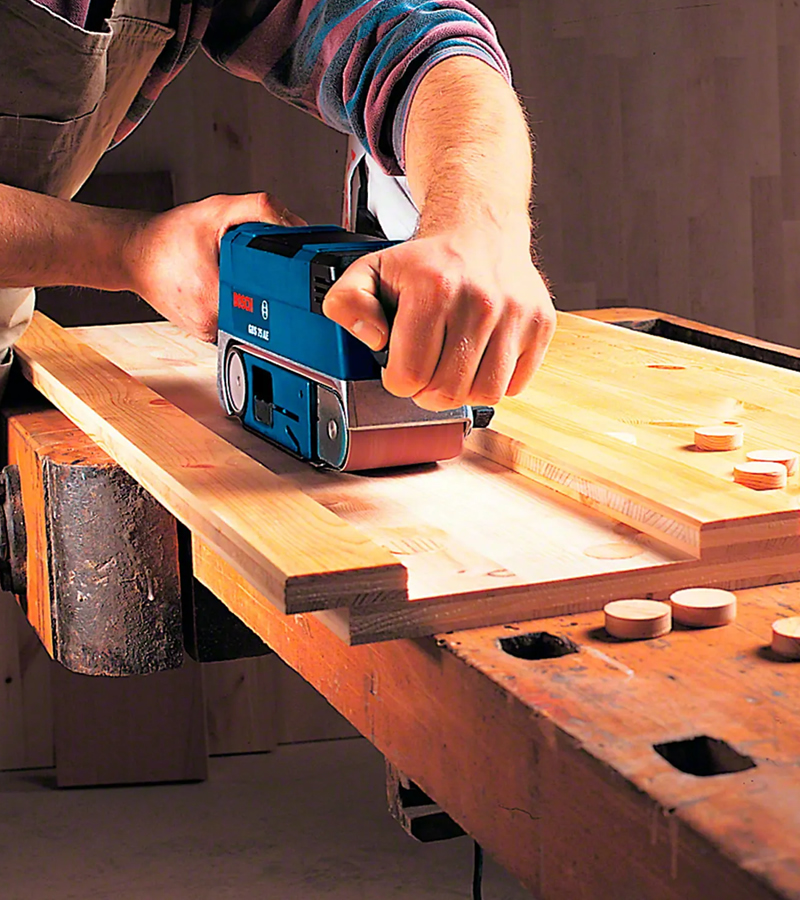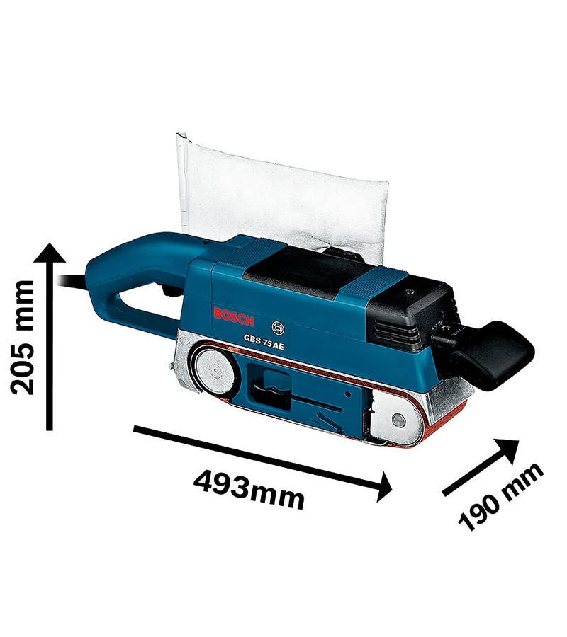 La Lijadora de banda Bosch GBS 75 AE es una herramienta que proporciona practicidad y rapidez en los trabajos de lijado y nivelado de superficies de madera, plástico y metal. Tiene 750 Watts de potencia y trabaja con bandas de lija en dimensiones de 75 milímetros de ancho por 533 milímetros de largo.