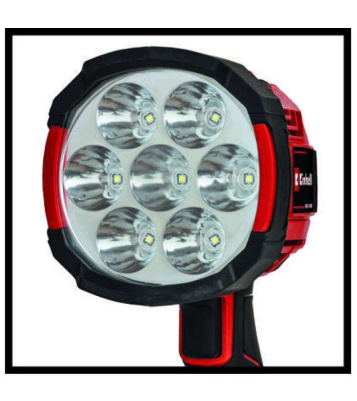 La lámpara inalámbrica Einhell TE-CL 18/2500 LiAC – Solo con 2500 lúmenes realmente ilumina la oscuridad. Como miembro de la familia Power-X-Change, todas las baterías recargables de la familia de sistemas se pueden utilizar en combinación con la lámpara. La práctica lámpara inalámbrica resulta útil no solo en áreas poco iluminadas como sótanos, obras de construcción, lofts o rincones oscuros en el cobertizo. Para obtener una visión general completa de todo, la lámpara inalámbrica es útil para cortes de energía o en vacaciones de campamento, caminatas nocturnas, caminatas después del atardecer y para otras actividades al aire libre, siempre que realmente no pueda arreglárselas sin una fuente de luz fuera de la red. Gracias a los siete LED brillantes y duraderos con un flujo de luz total de 2500 lúmenes y una temperatura de color de 6500 K (elvin), la lámpara inalámbrica no es más brillante, también es más robusto y resistente a los impactos que una lámpara halógena comparable. Dos niveles de brillo proporcionan una iluminación ideal. Hay una rosca de trípode de 1/4 “que permite sujetarla a un trípode. Para facilitar el manejo y la flexibilidad de uso, la lámpara tiene un diseño delgado y liviano y cuenta con un mango ergonómico con un agarre suave. Este producto viene sin batería ni cargador de la serie Power X-Change que están disponibles por separado, por ejemplo, como un práctico set de iniciación en diferentes capacidades.