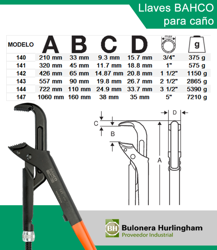 | >BAH12028 | LLAVE PARA CAÑOS 141 280 MM 1" -- BAHCO |