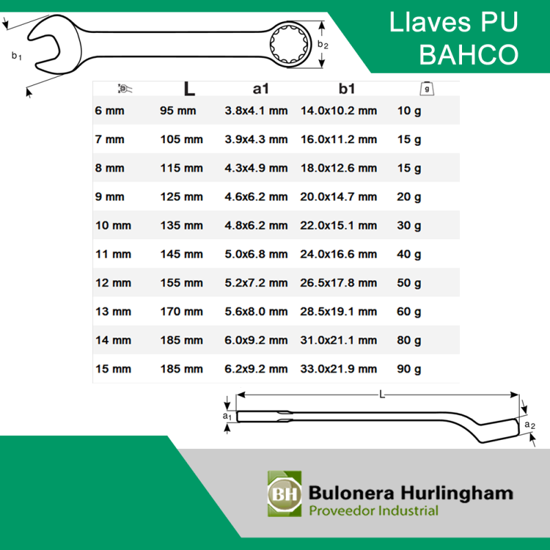 | >BAH07415 | LLAVE COMBINADA PU 15 MM -- BAHCO |