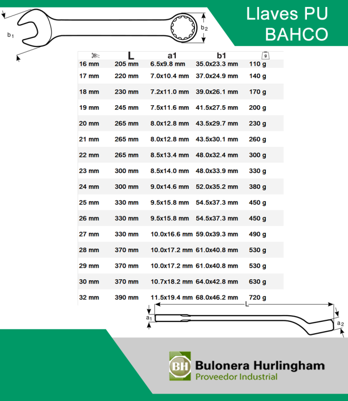 | >BAH07432 | LLAVE COMBINADA PU 32 MM -- BAHCO |
