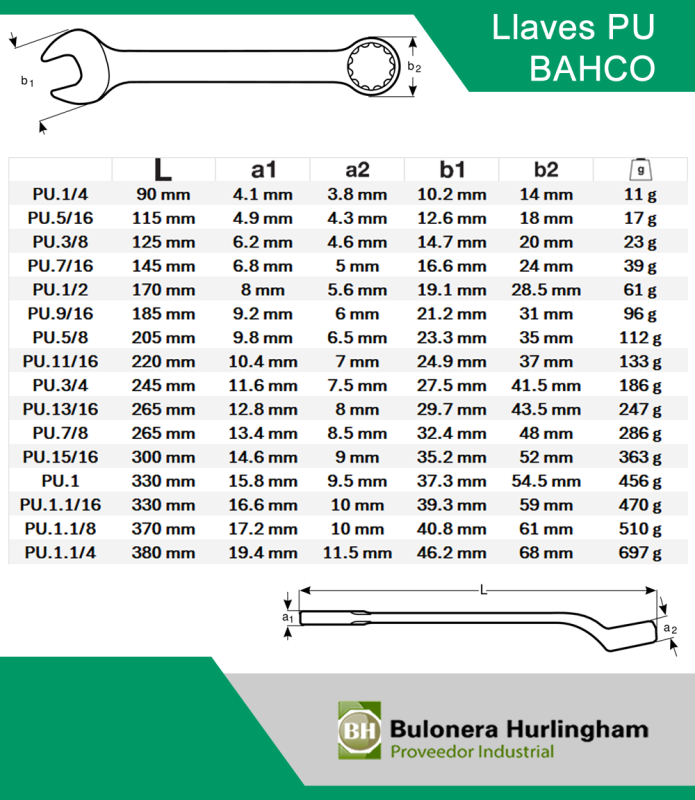 | >BAH07464 | LLAVE COMBINADA PU 1" -- BAHCO |