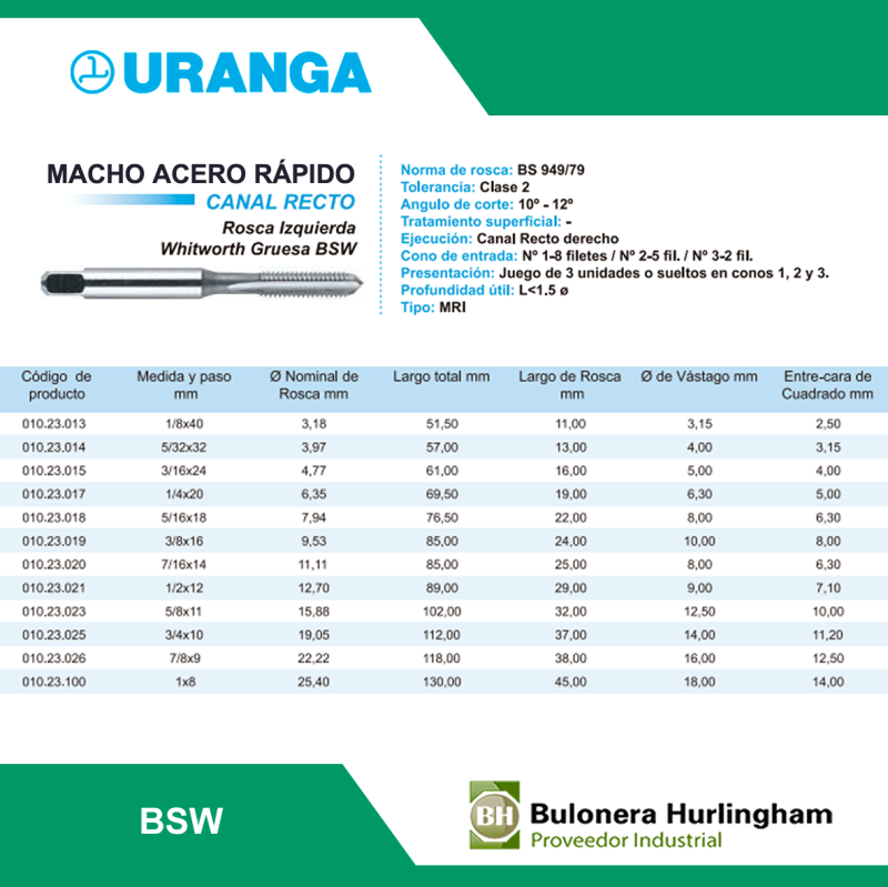 | 2010230172 | MACHO ACERO RAPIDO W 1/4 X 20H IZQUIERDO -- URANGA |