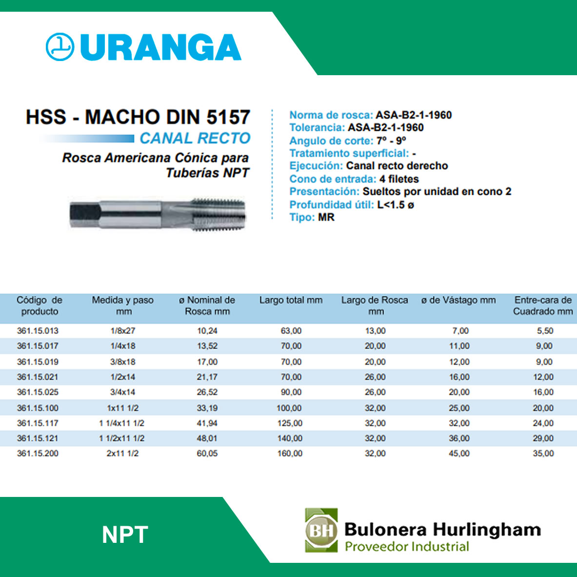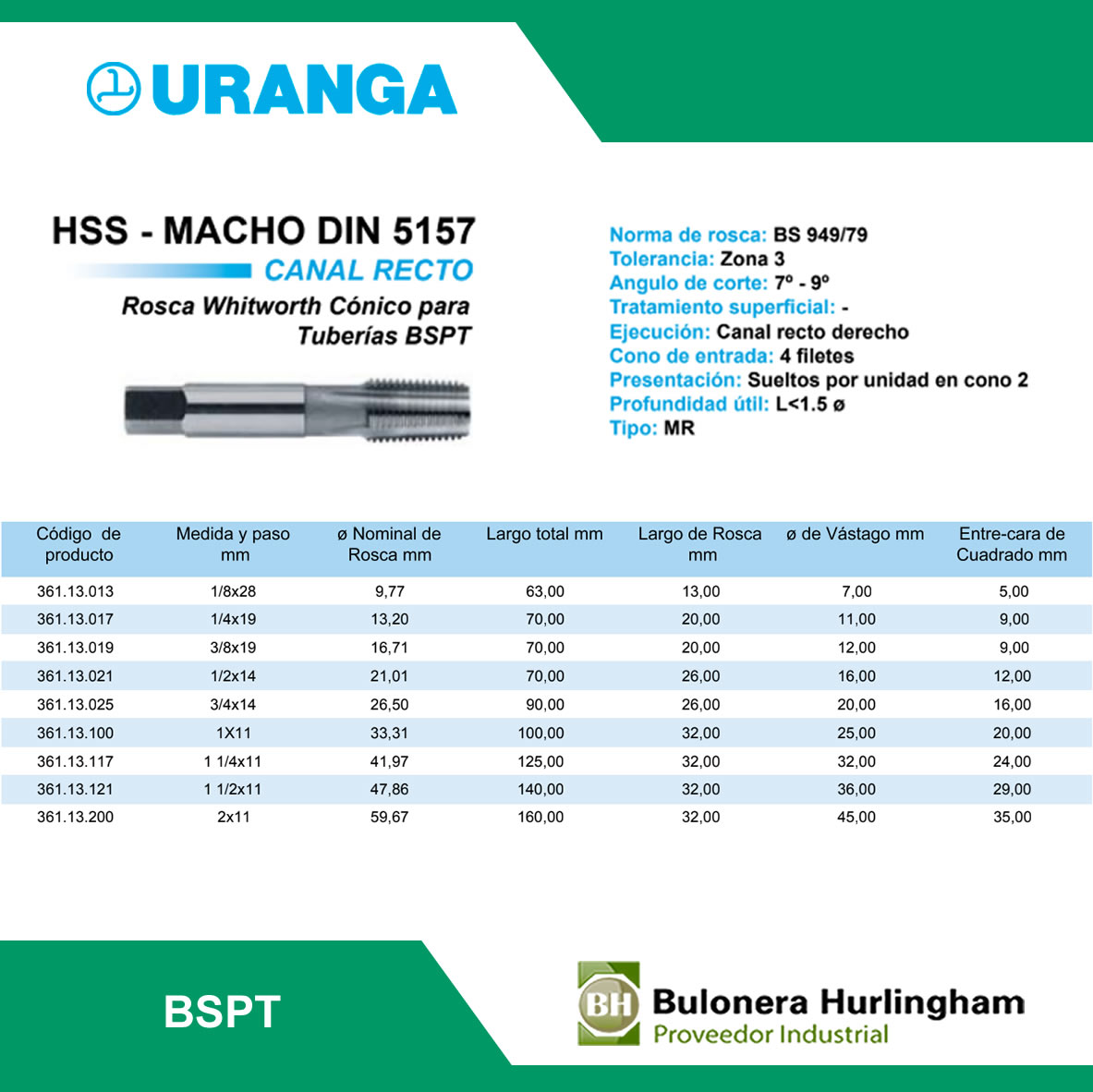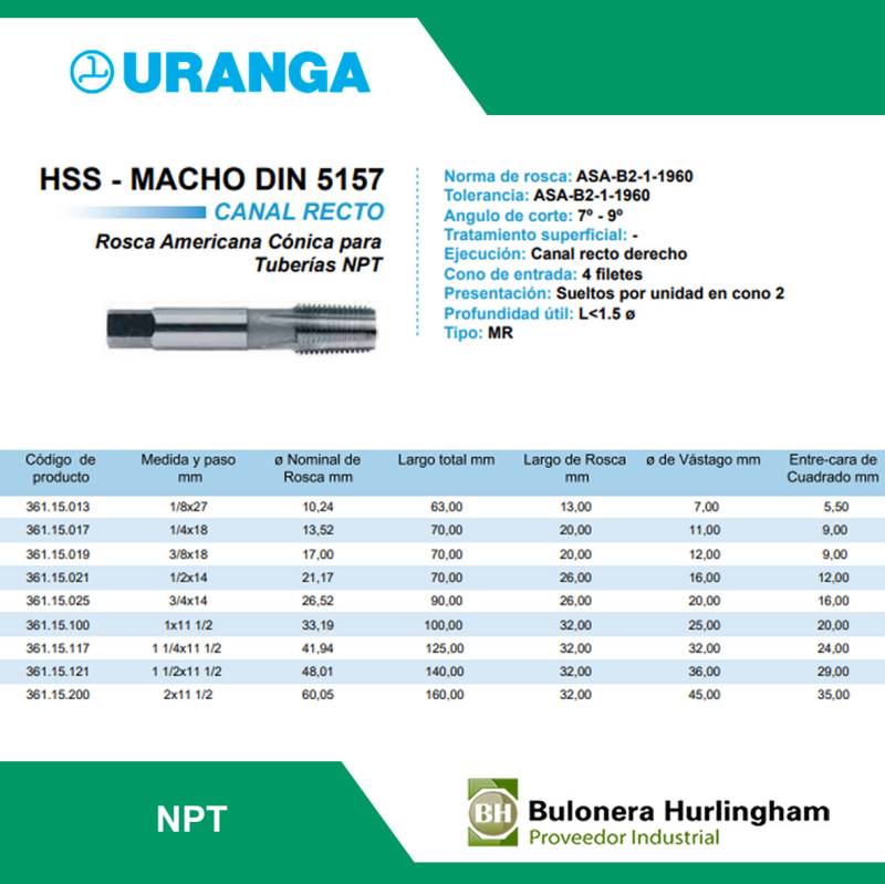 | 2361130173 | MACHO ACERO RAPIDO BSPT 1/4 X 19H -- URANGA |