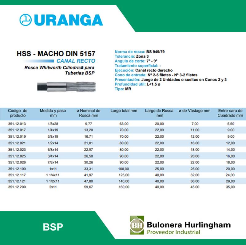 | 2351120212 | MACHO ACERO RAPIDO BSP 1/2 X 14H -- URANGA |